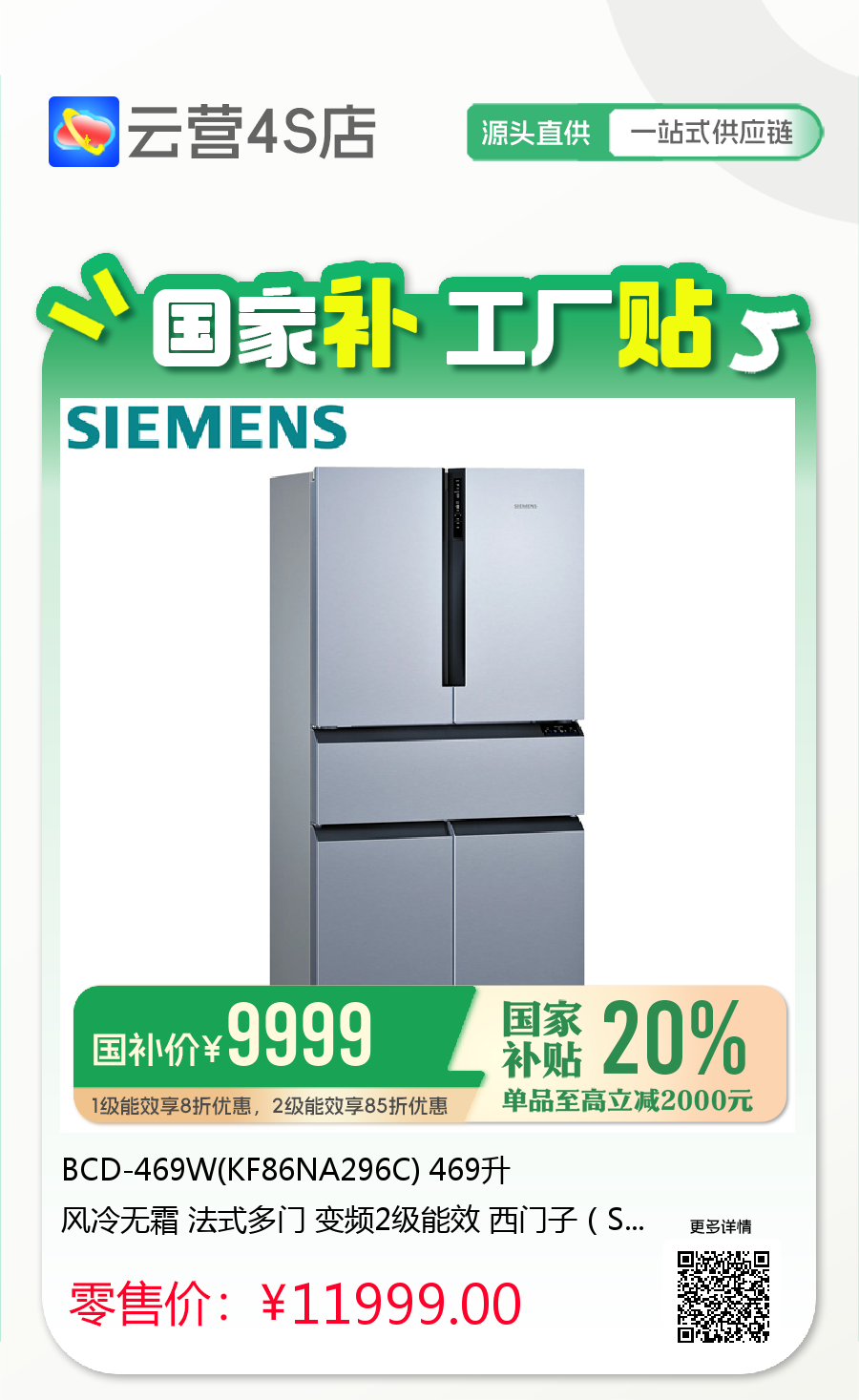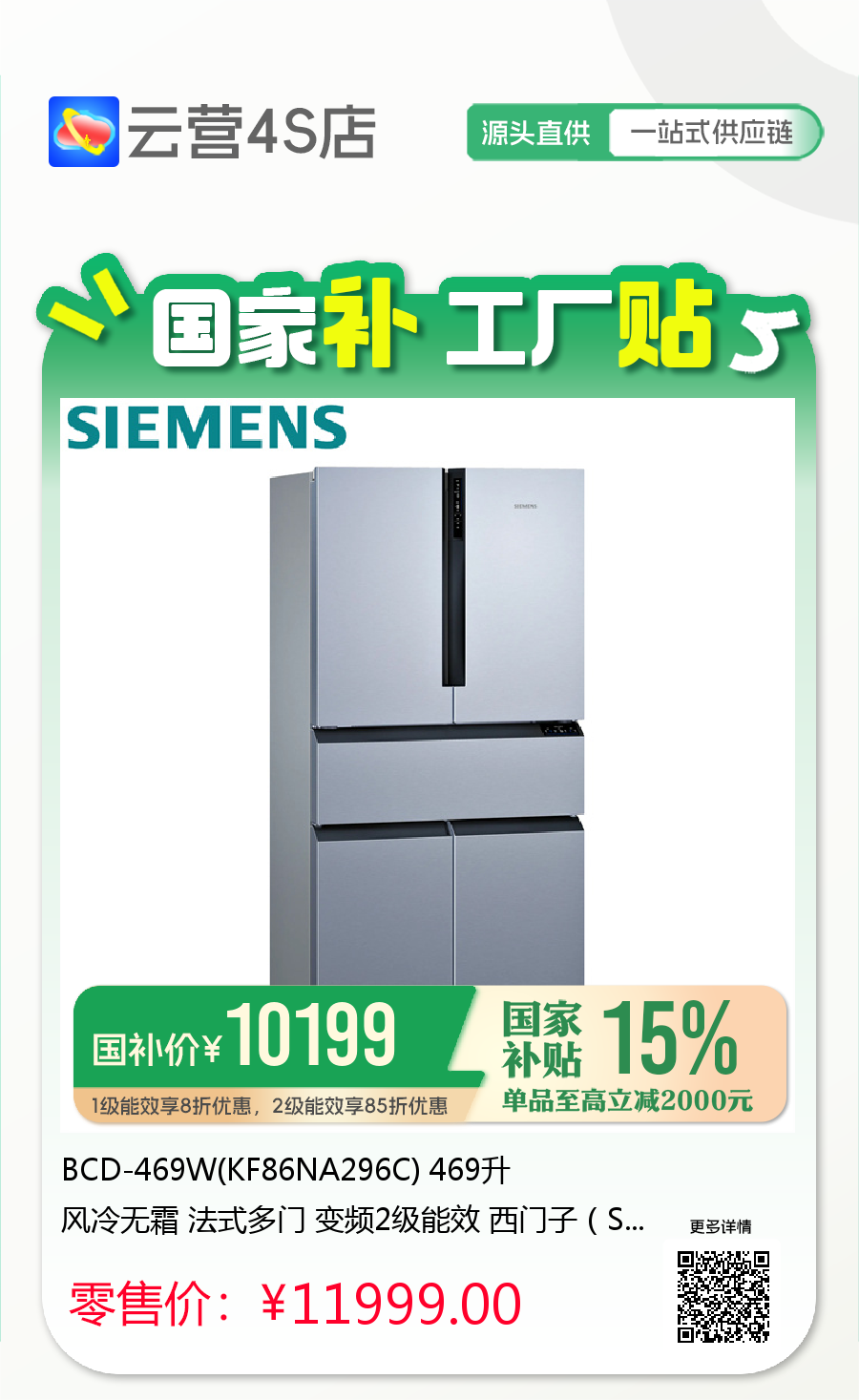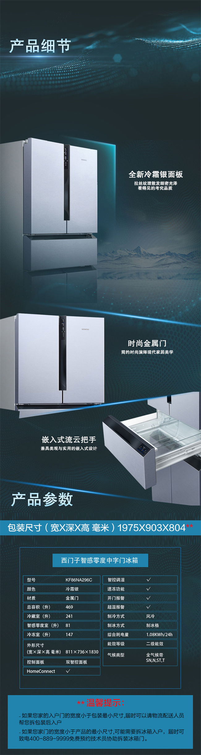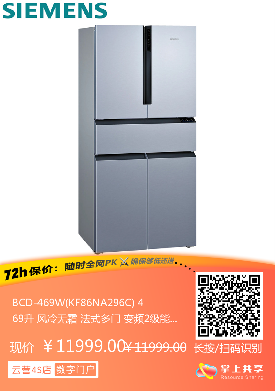 BCD-469W(KF86NA296C) 469升 风冷无霜 法式多门 变频2级能效 西门子(SIEMENS)