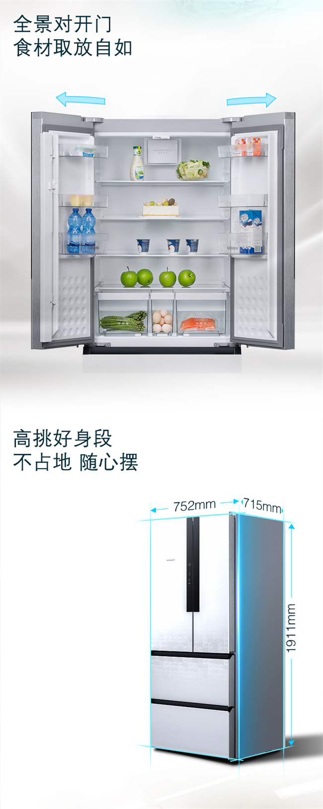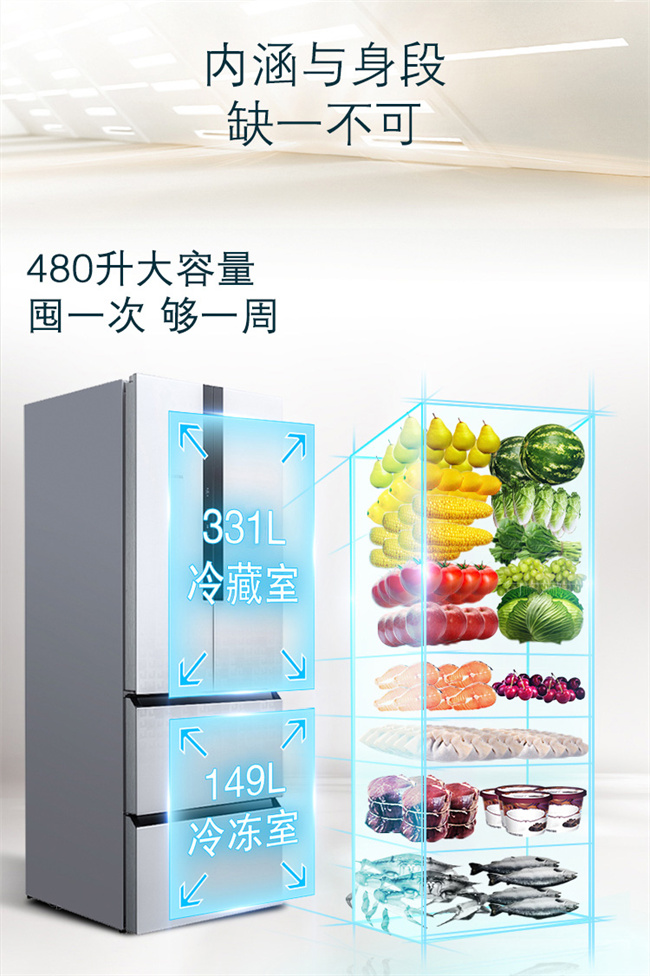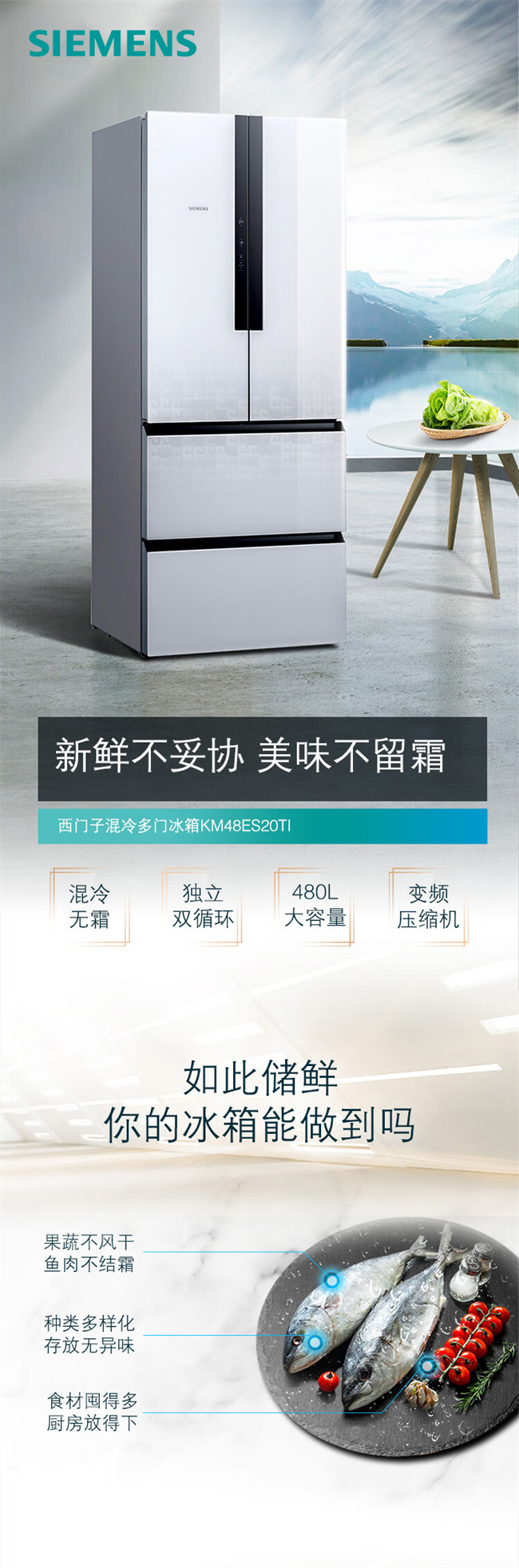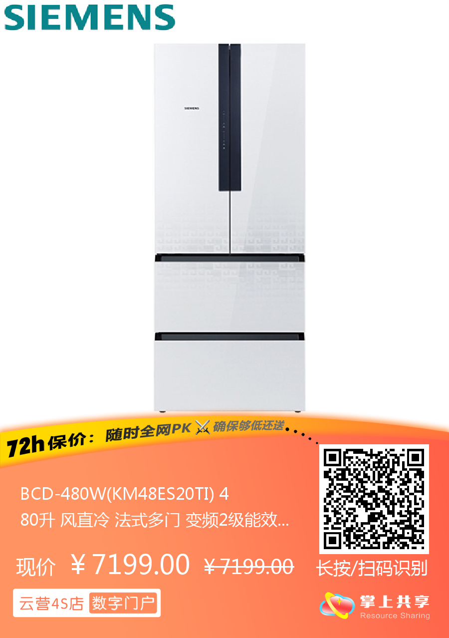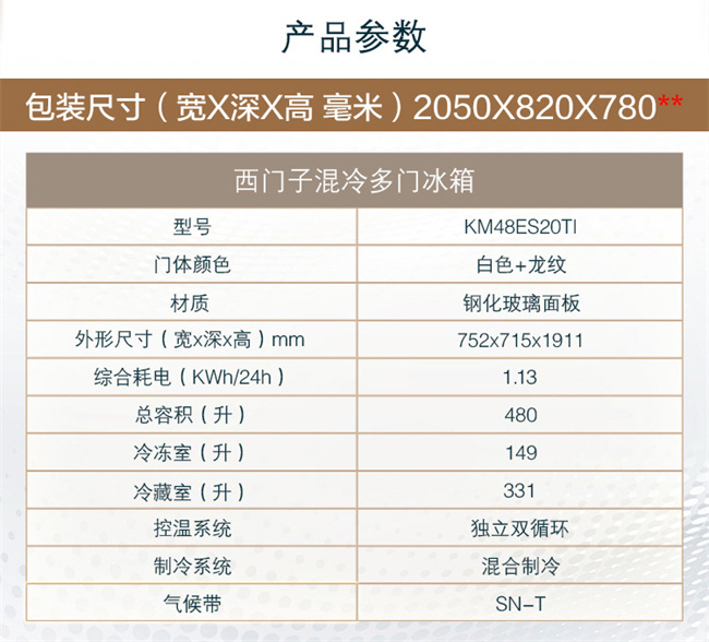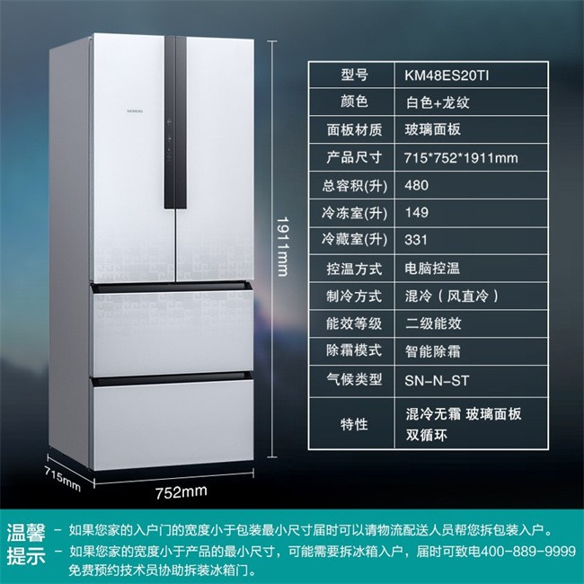 BCD-480W(KM48ES20TI) 480升 风直冷 法式多门 变频2级能效 西门子(SIEMENS)