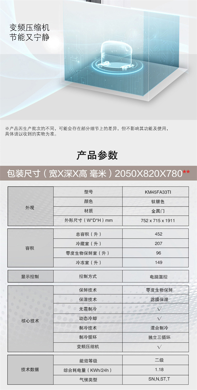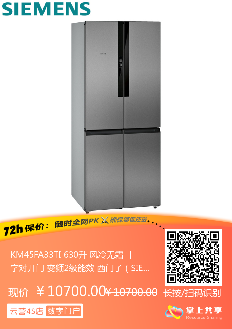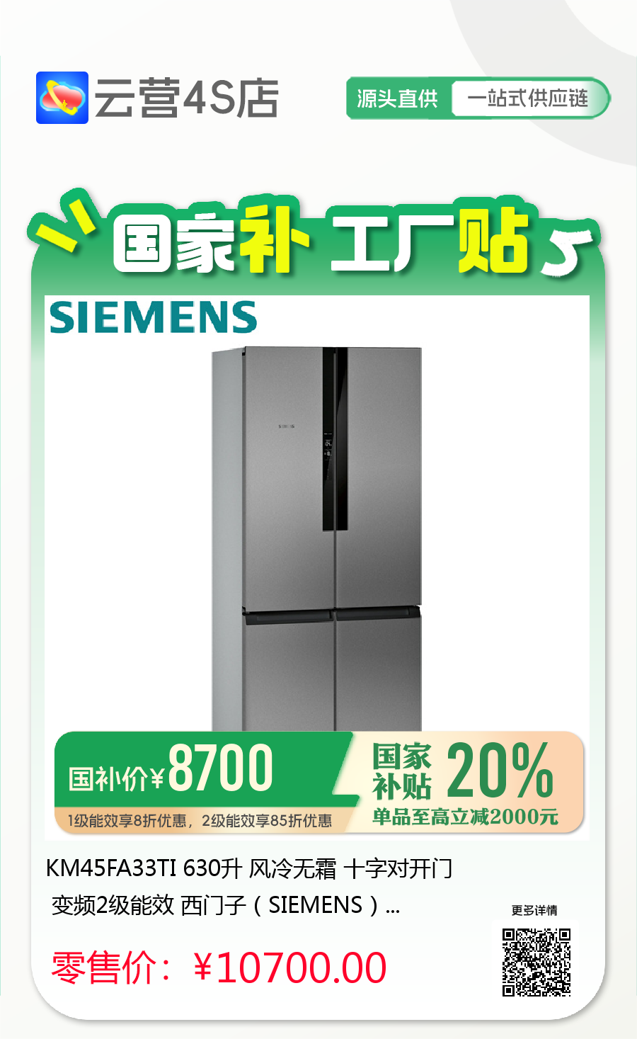 KM45FA33TI 630升 风冷无霜 十字对开门 变频2级能效 西门子(SIEMENS)