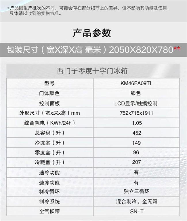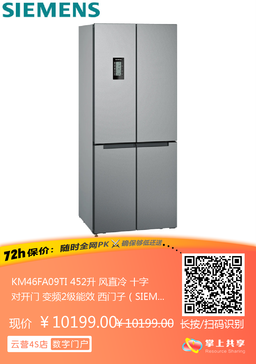 KM46FA09TI 452升 风直冷 十字对开门 变频2级能效 西门子(SIEMENS)