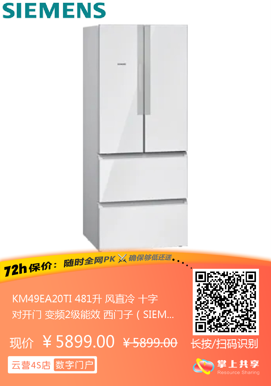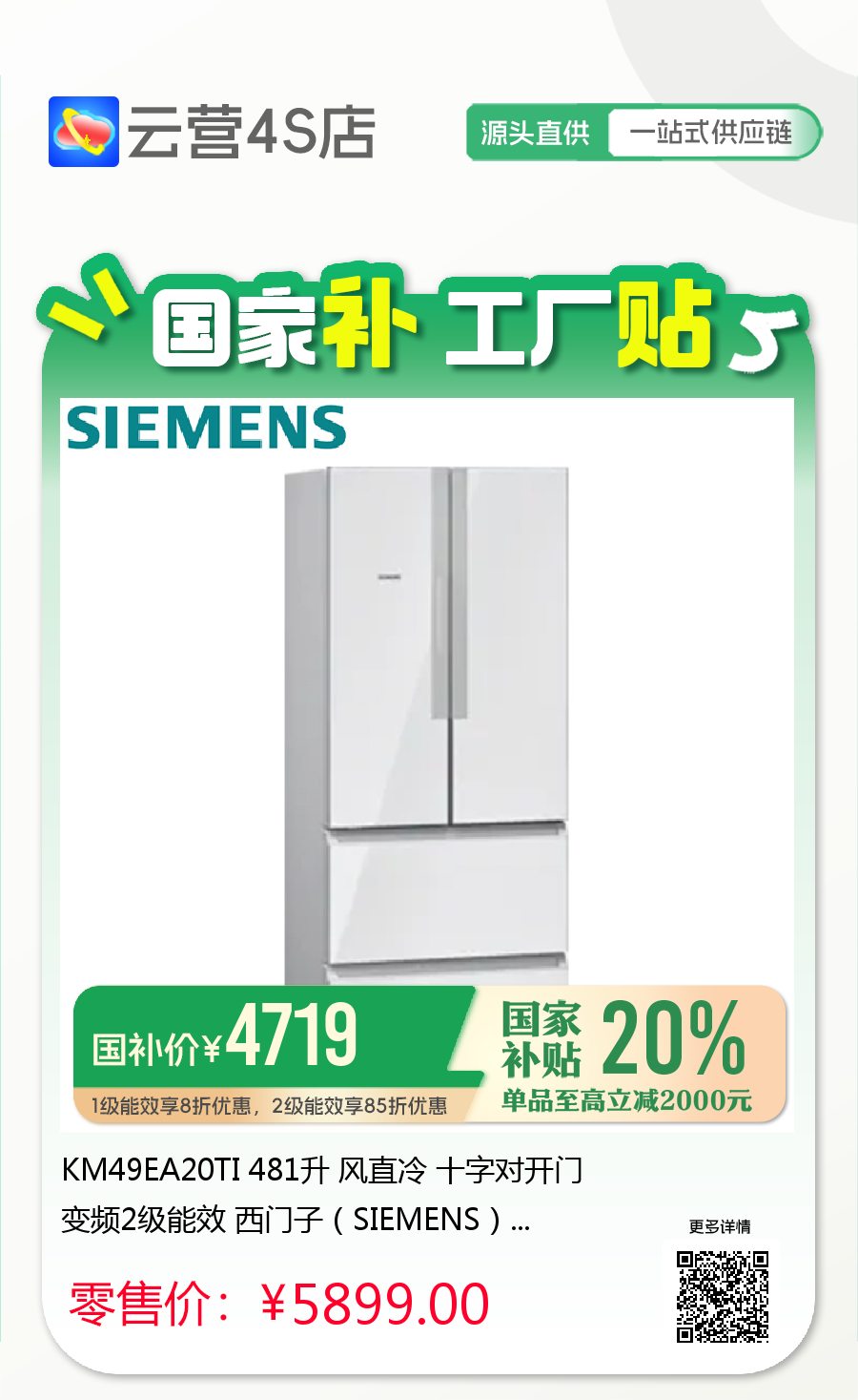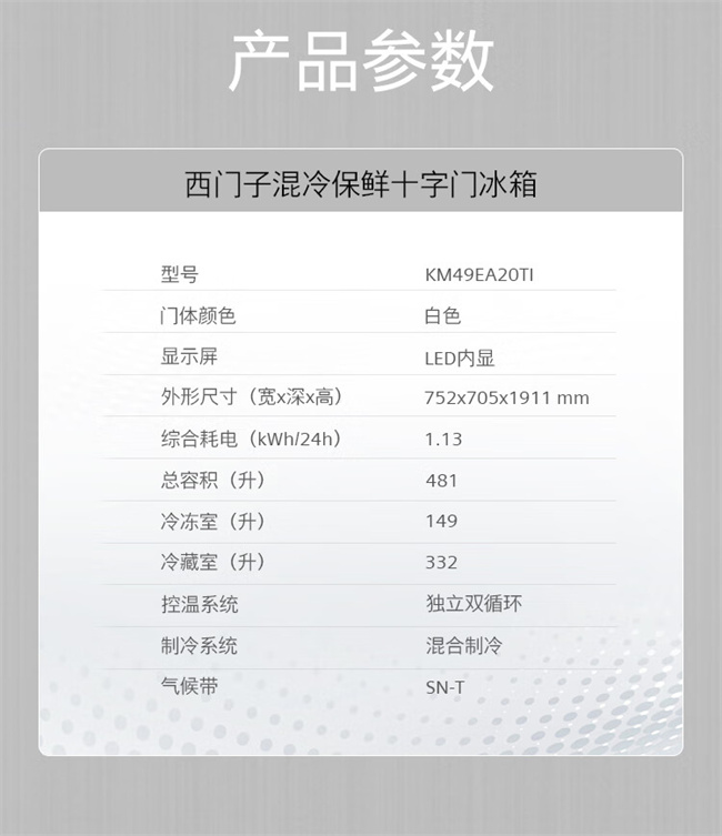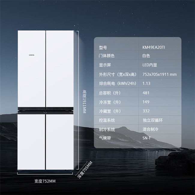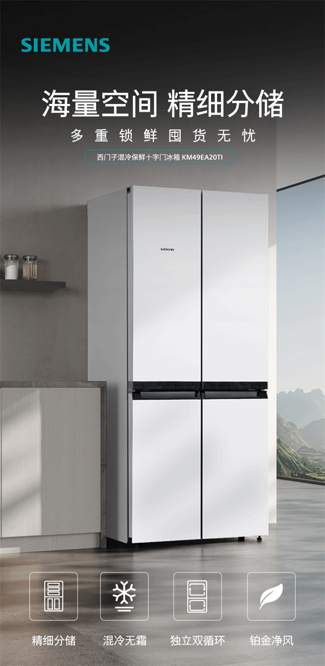 KM49EA20TI 481升 风直冷 十字对开门 变频2级能效 西门子(SIEMENS)