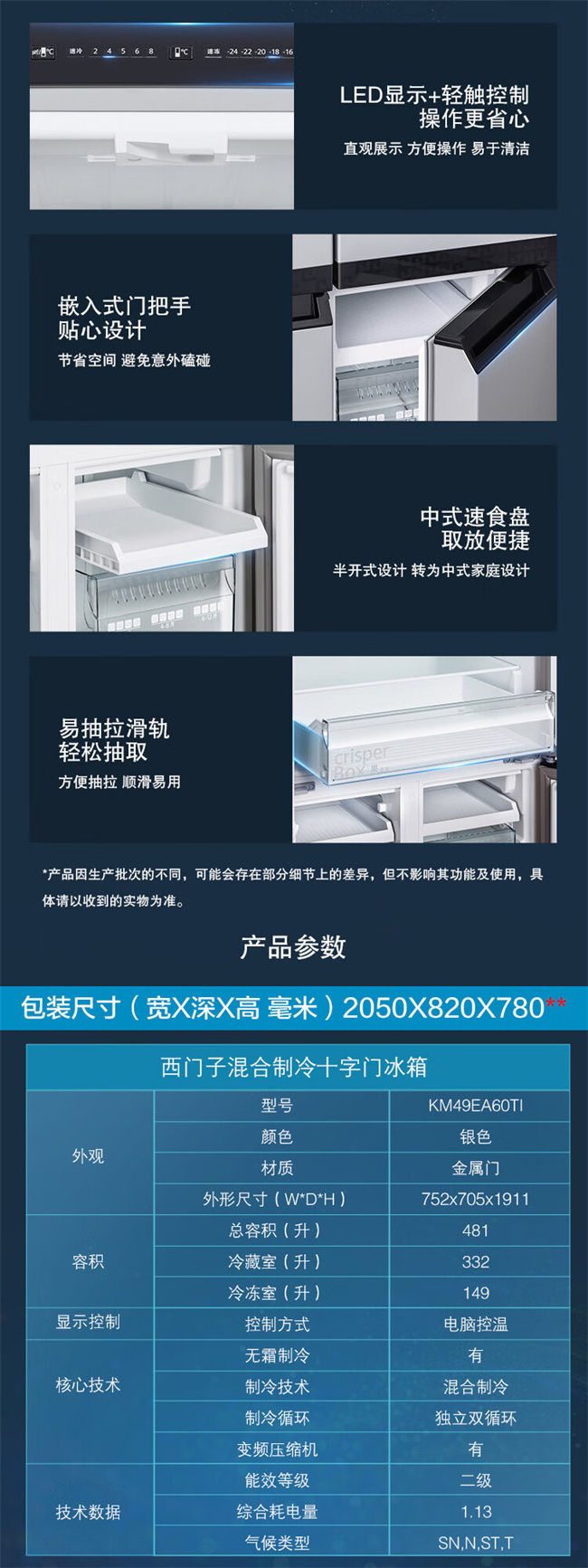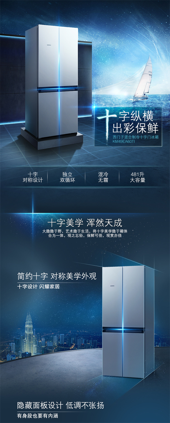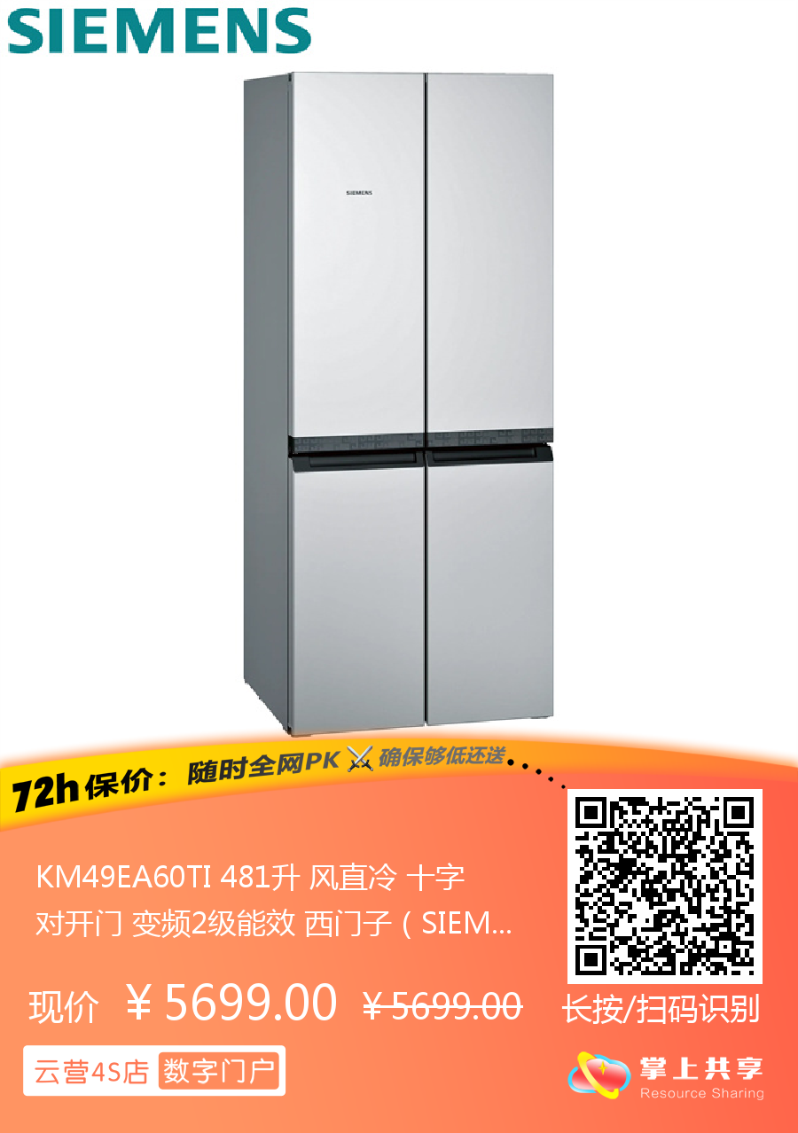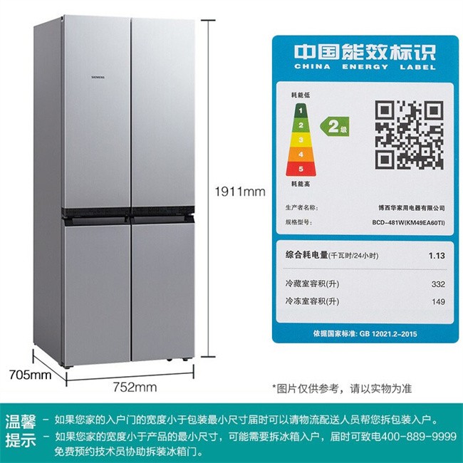 KM49EA60TI 481升 风直冷 十字对开门 变频2级能效 西门子(SIEMENS)