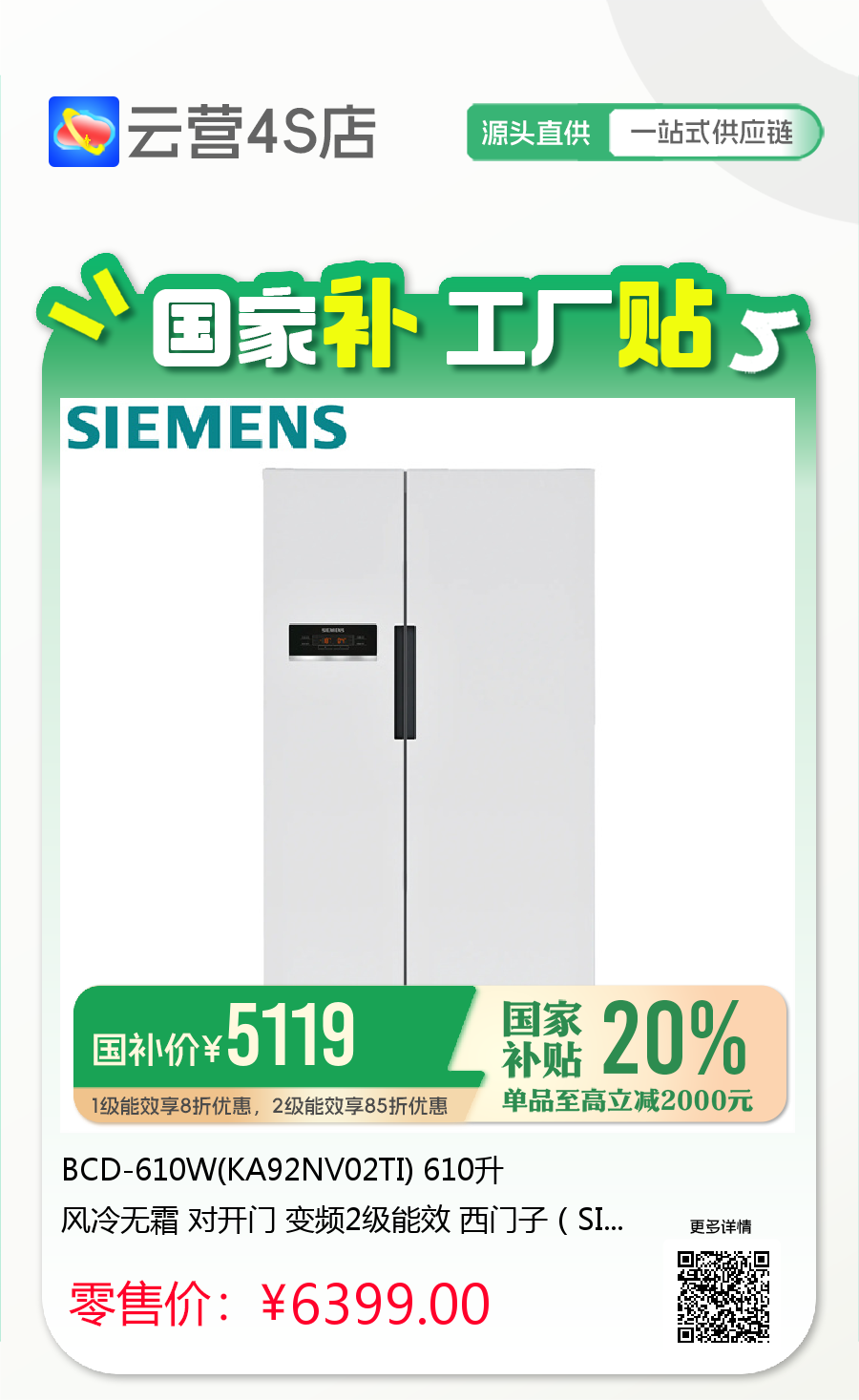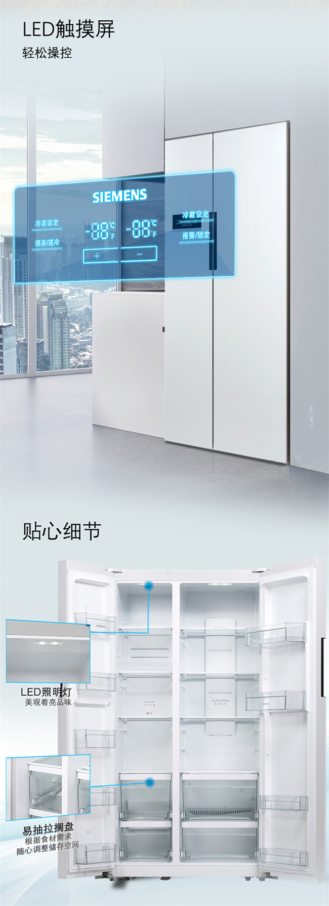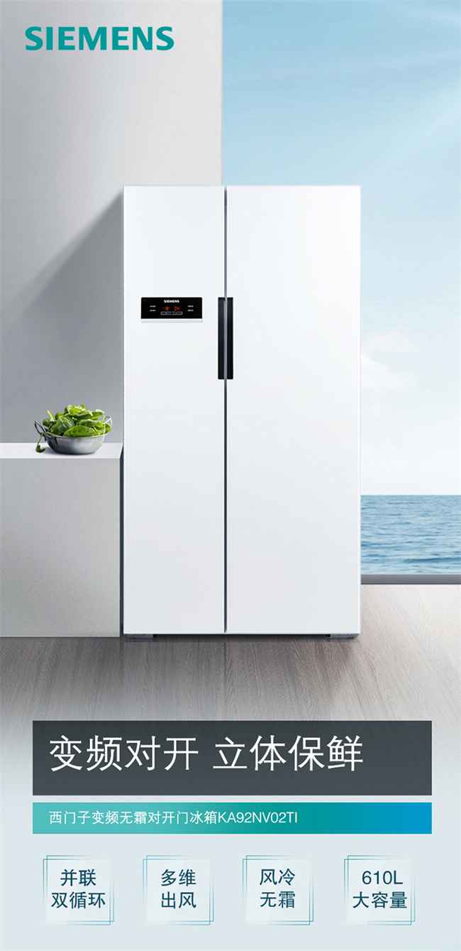 BCD-610W(KA92NV02TI) 610升 风冷无霜 对开门 变频2级能效 西门子(SIEMENS)