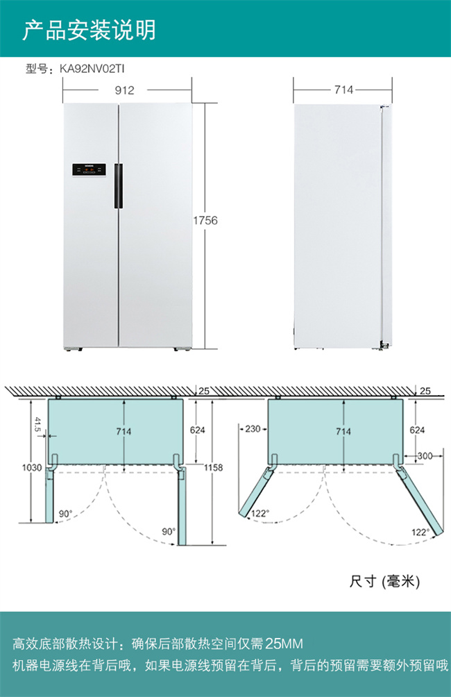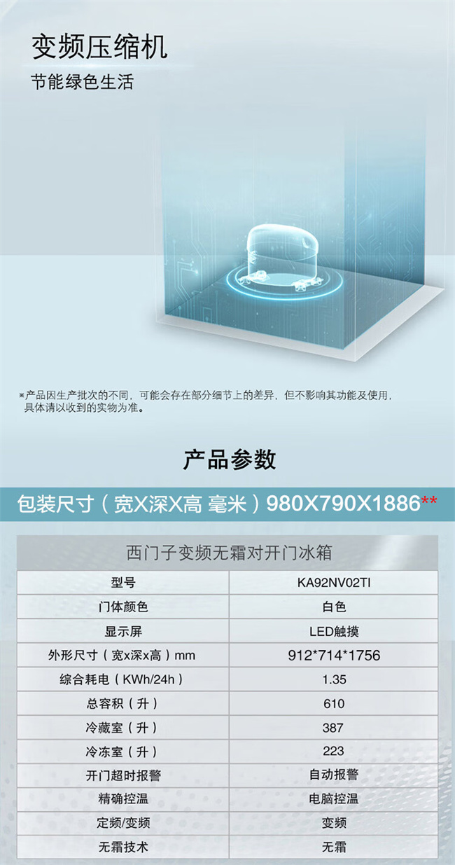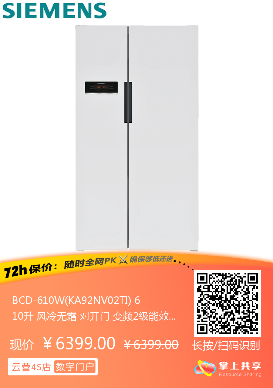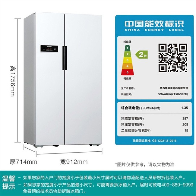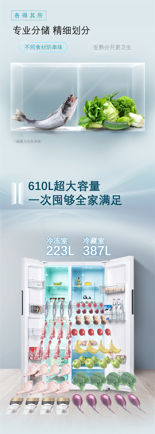 BCD-610W(KA92NV02TI) 610升 风冷无霜 对开门 变频2级能效 西门子(SIEMENS)
