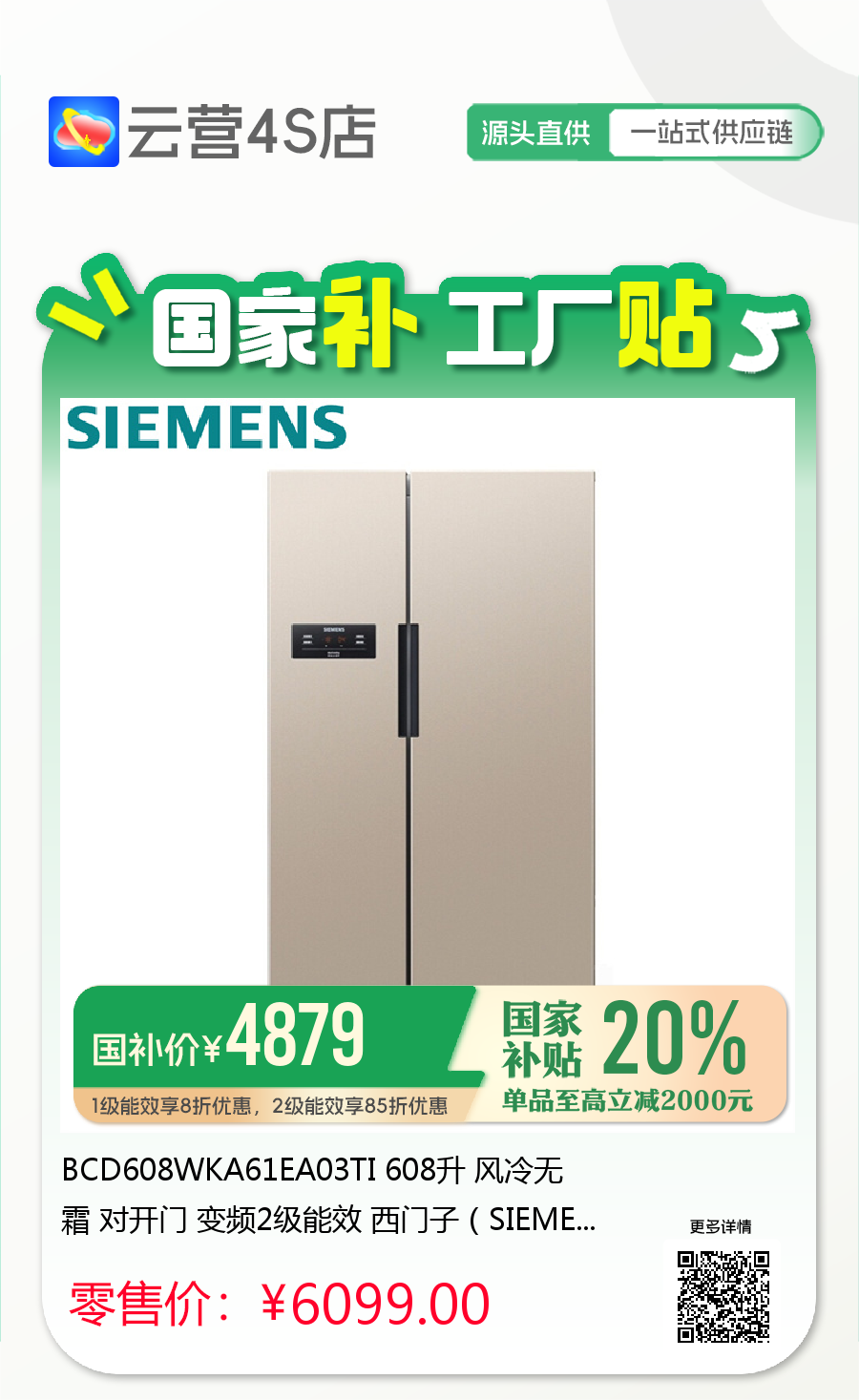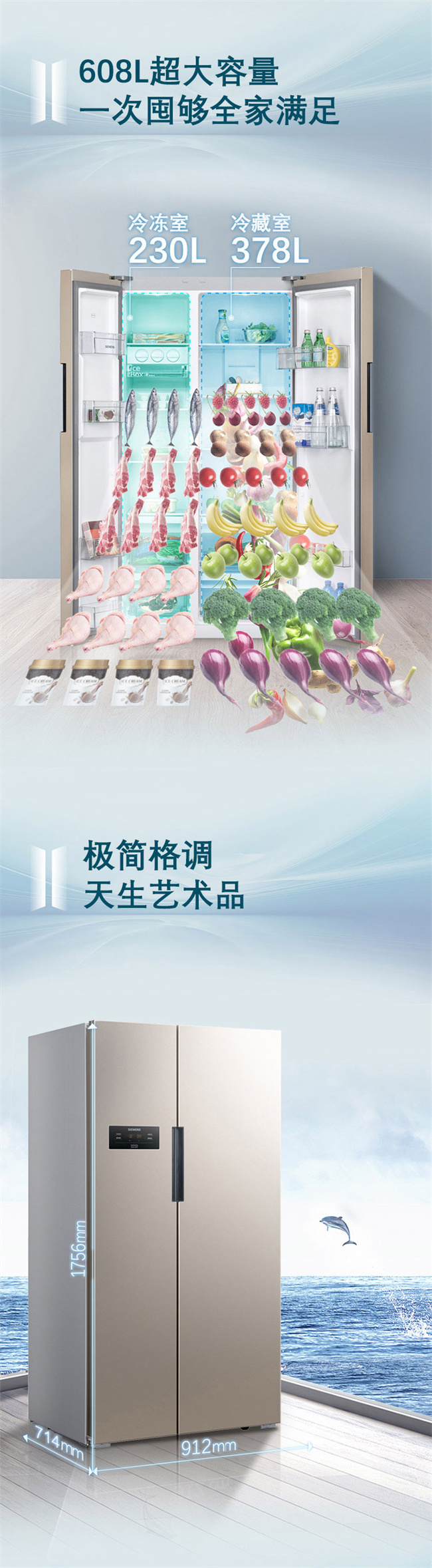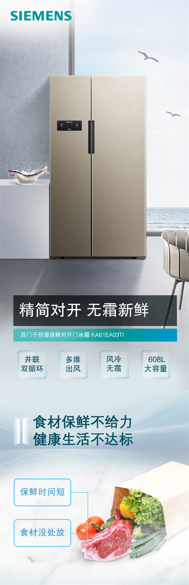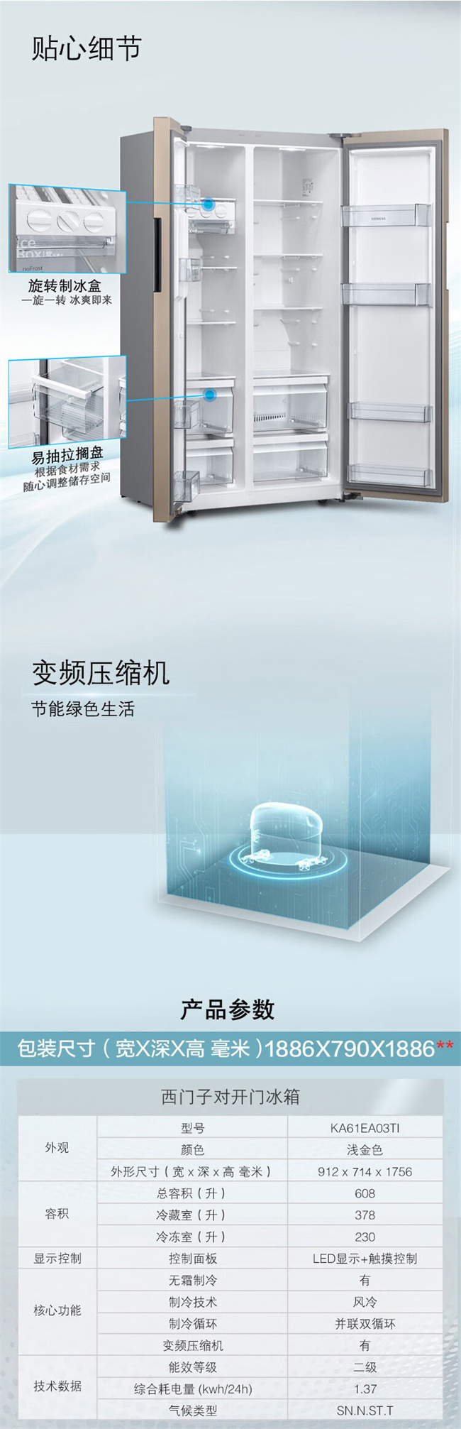 BCD608WKA61EA03TI 608升 风冷无霜 对开门 变频2级能效 西门子(SIEMENS)