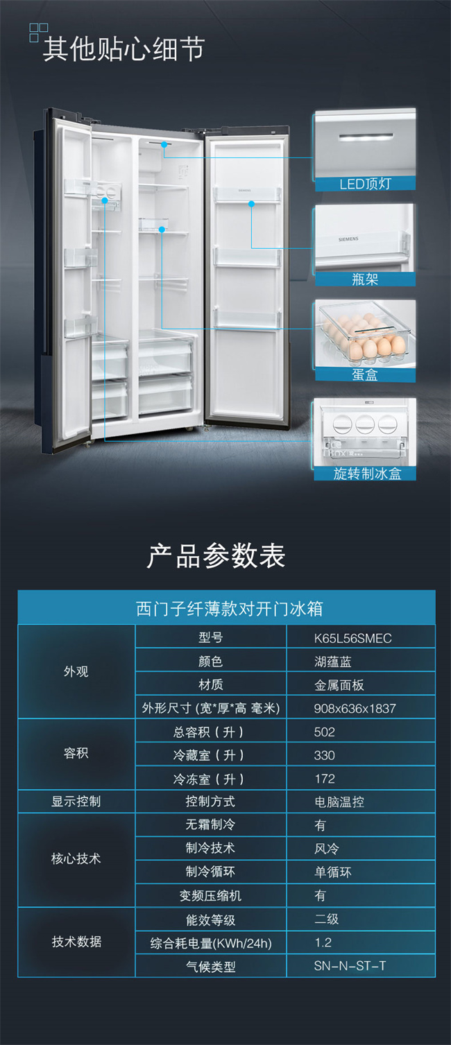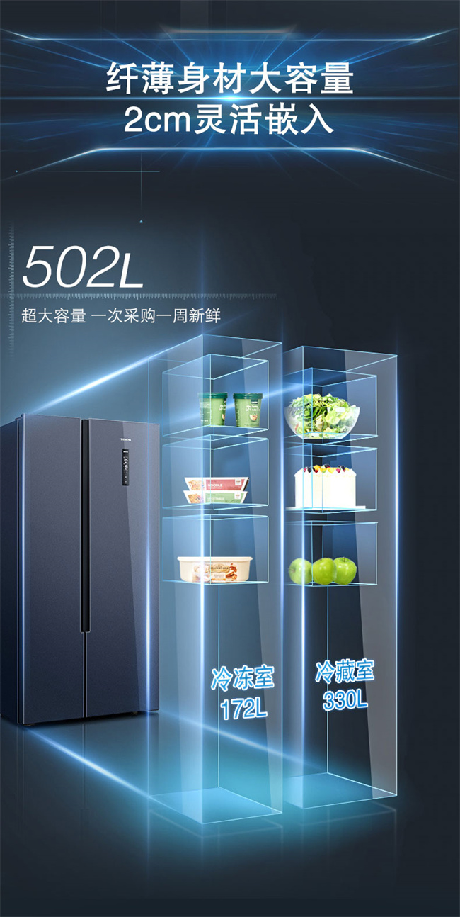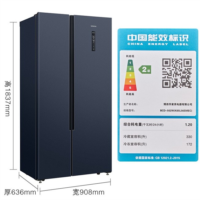 BCD502WK65L56SMEC 502升 风冷无霜 对开门 变频2级能效 西门子(SIEMENS)