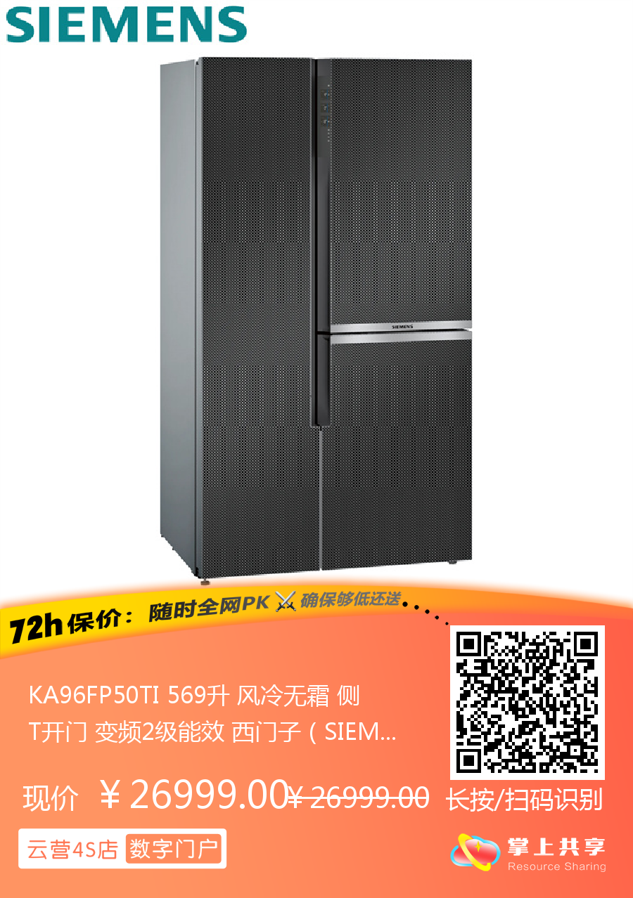 KA96FP50TI 569升 风冷无霜 侧T开门 变频2级能效 西门子(SIEMENS)
