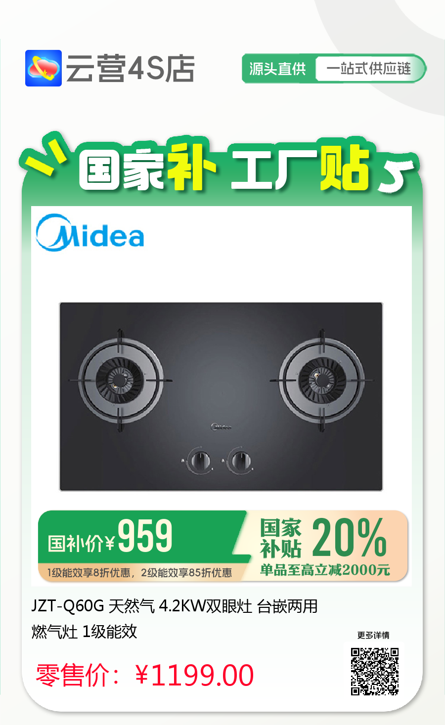 JZT-Q60G 天然气 4.2KW双眼灶 台嵌两用燃气灶 1级能效