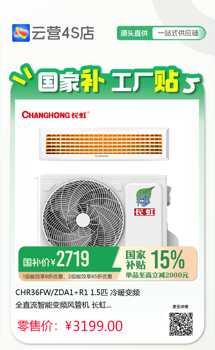 CHR36FW/ZDA1+R1 1.5匹 冷暖变频 全直流智能变频风管机 长虹