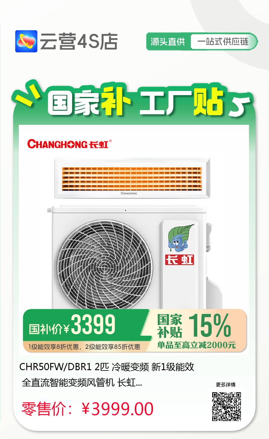 CHR50FW/DBR1 2匹 冷暖变频 新1级能效 全直流智能变频风管机 长虹