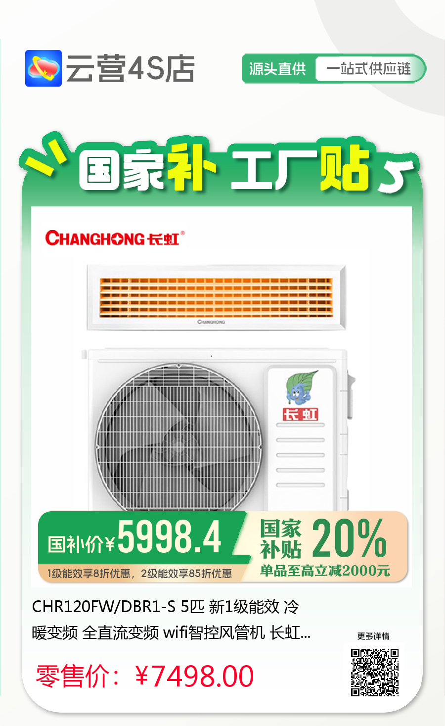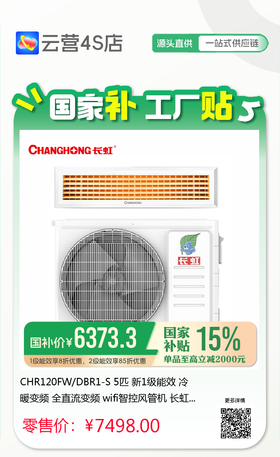 CHR120FW/DBR1-S 5匹 新1级能效 冷暖变频 全直流变频 wifi智控风管机 长虹