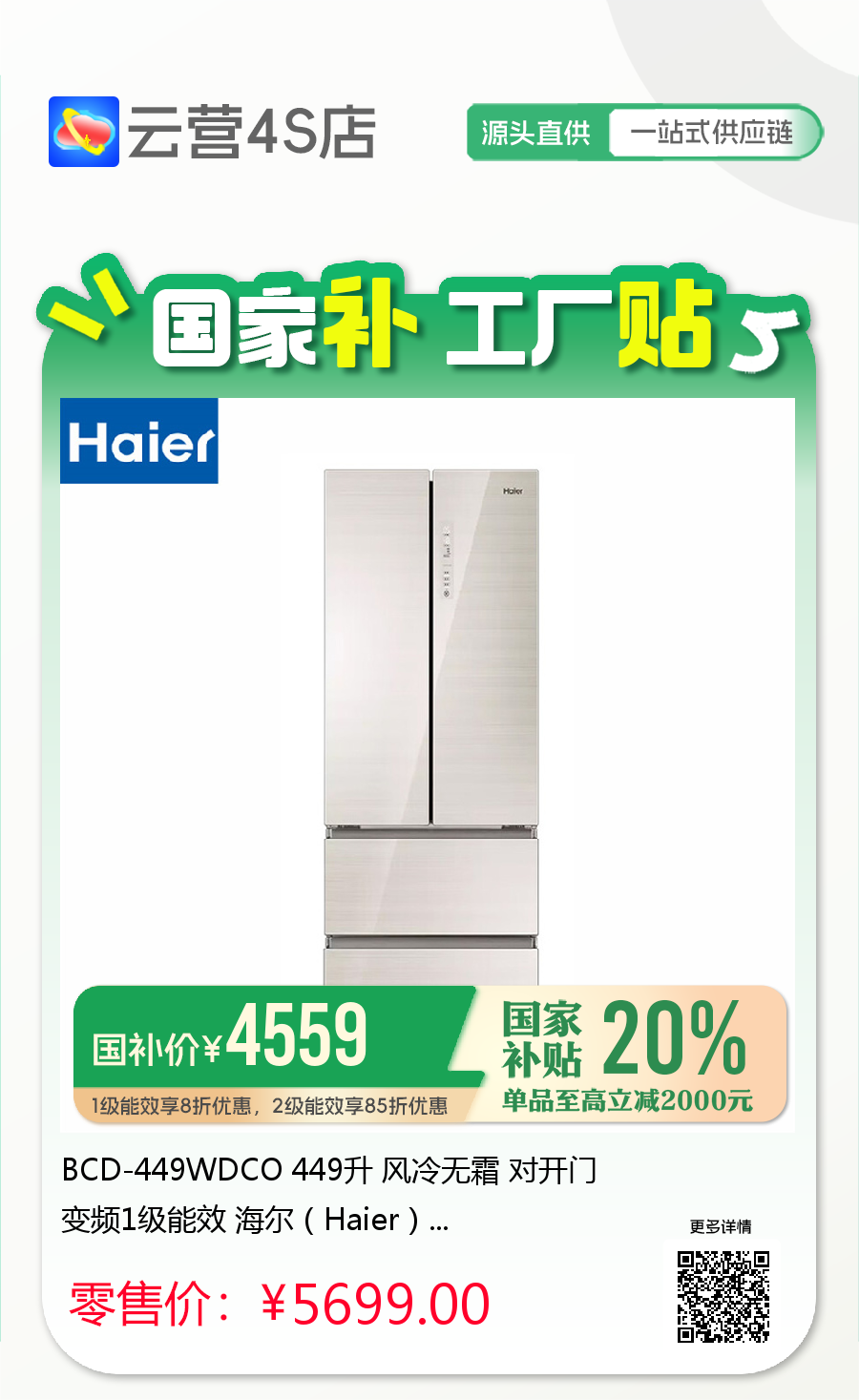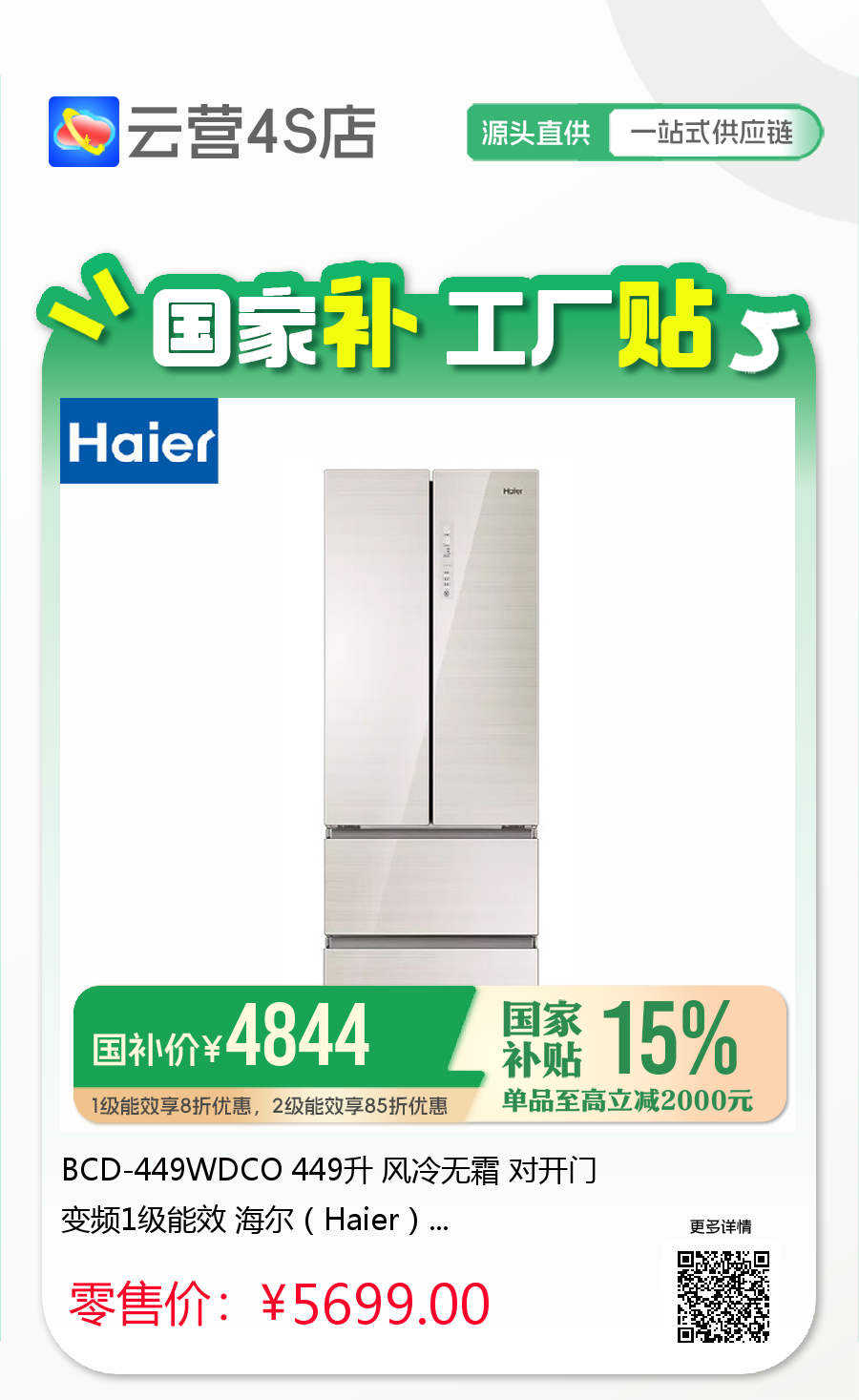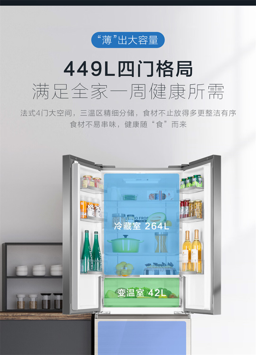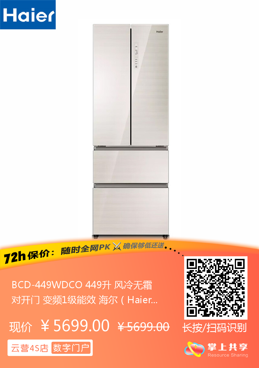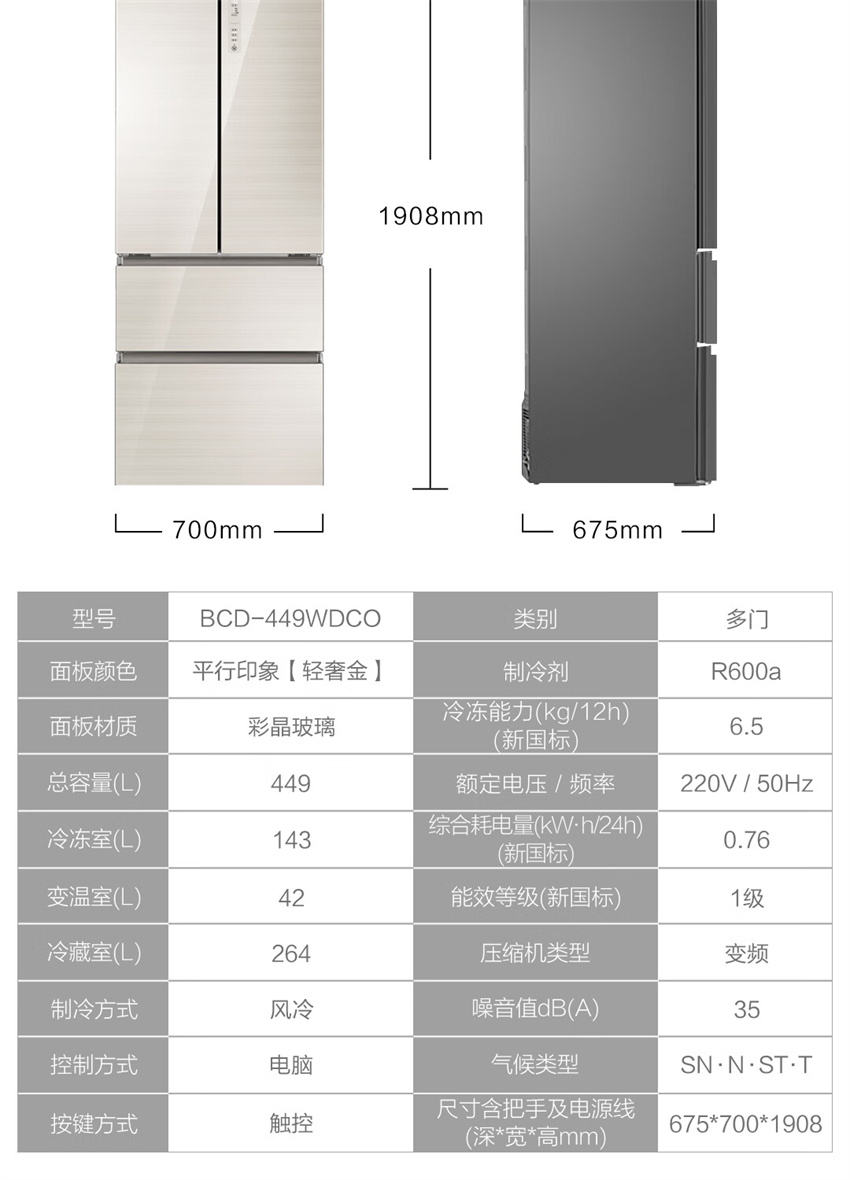 BCD-449WDCO 449升 风冷无霜 对开门 变频1级能效 海尔(Haier)