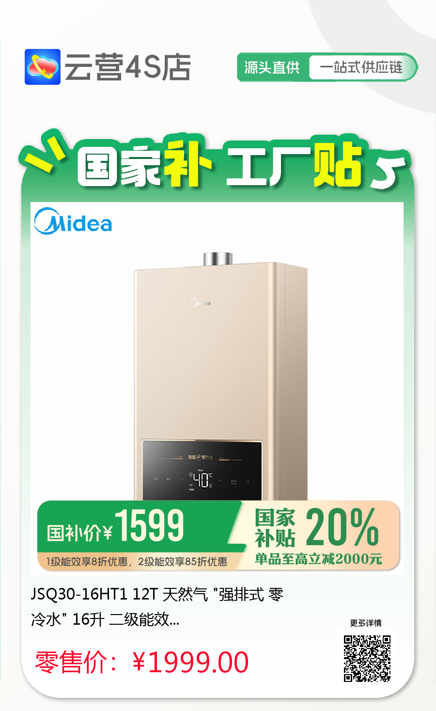 JSQ30-16HT1 12T 天然气 "强排式 零冷水" 16升 二级能效