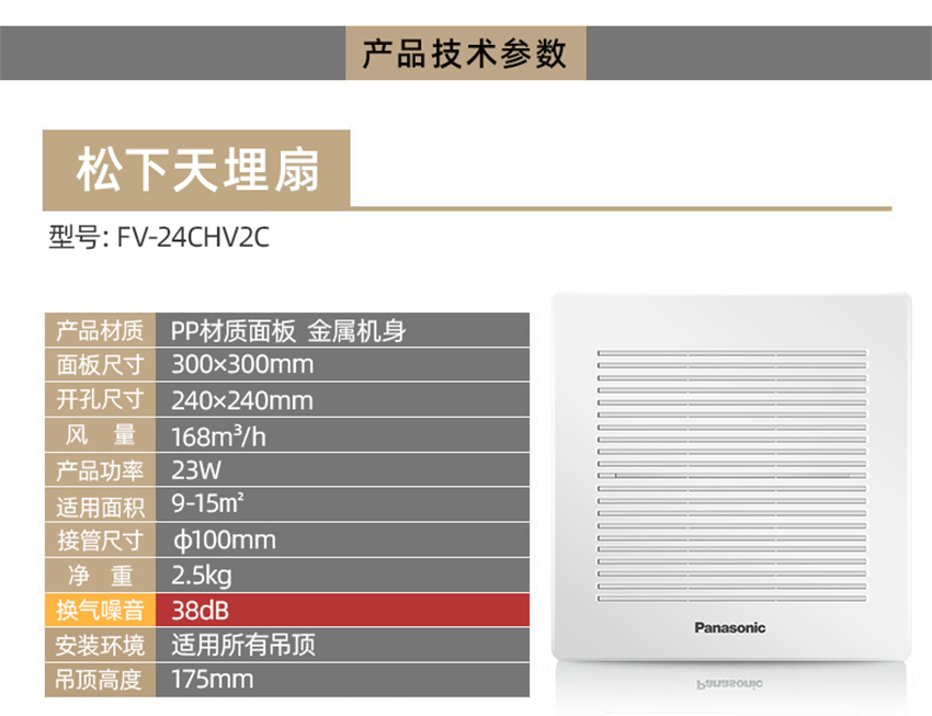 FV24CHV2C 换气扇吸顶扇吊顶式排气扇多种吊顶排风扇静音换气扇 松下Panasonic