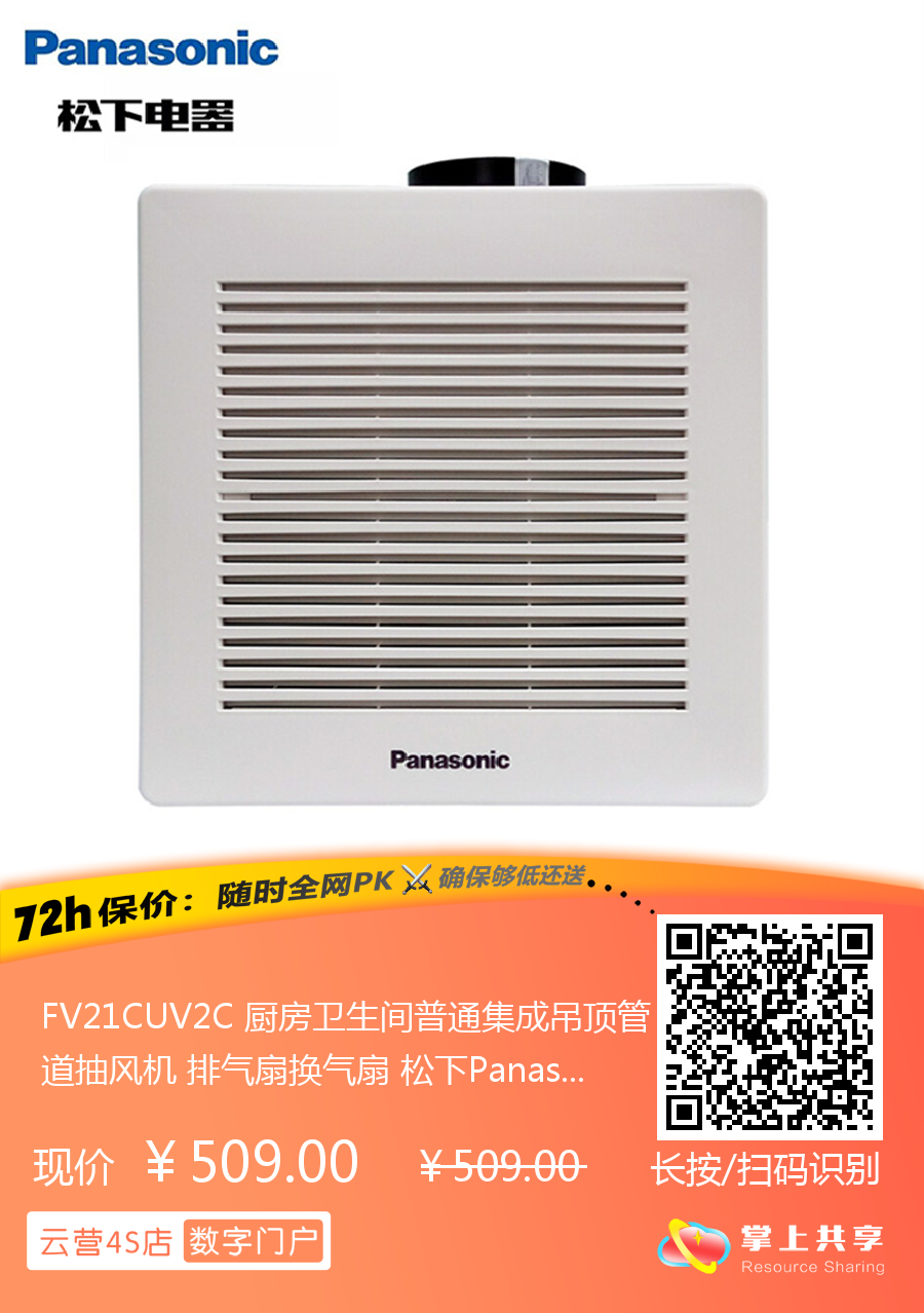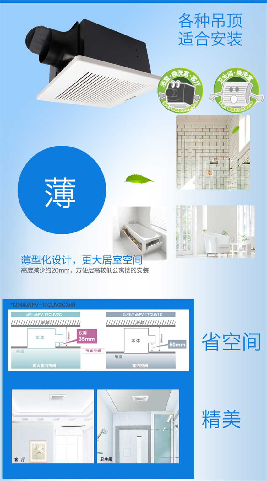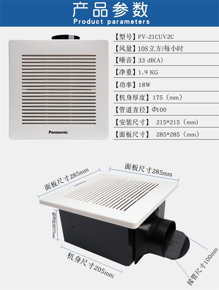 FV21CUV2C 厨房卫生间普通集成吊顶管道抽风机 排气扇换气扇 松下Panasonic