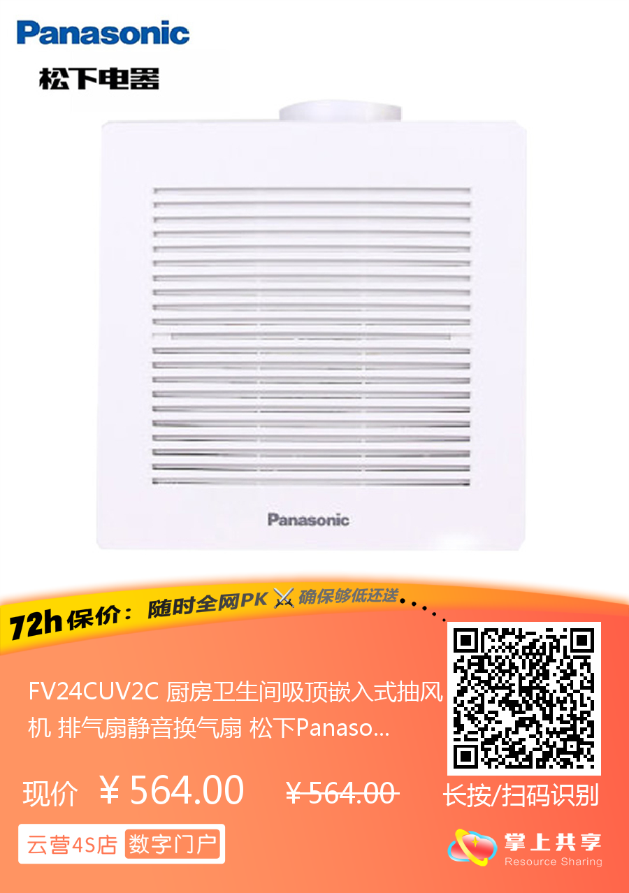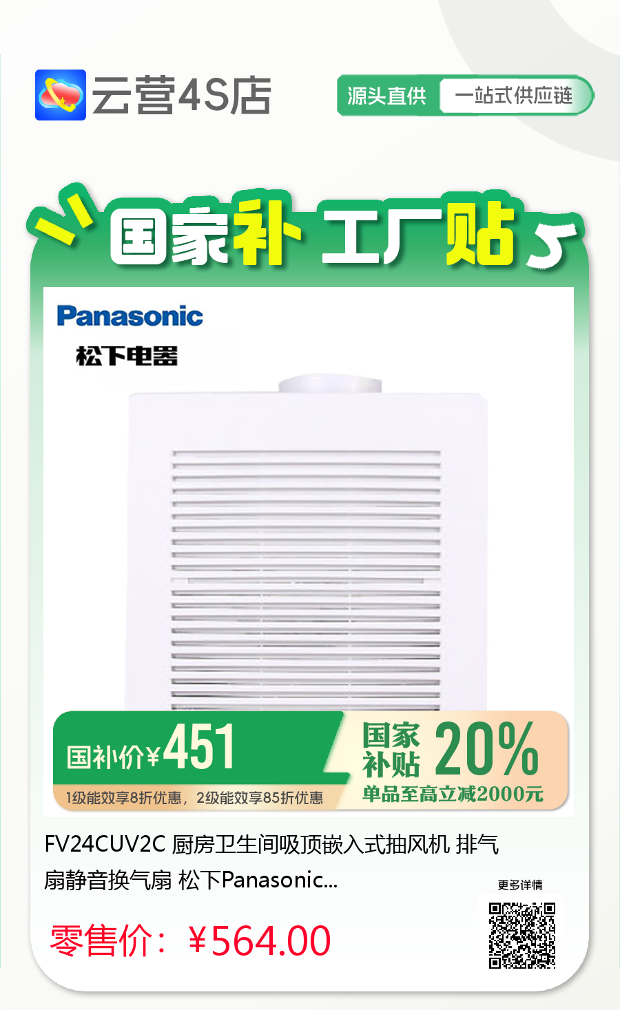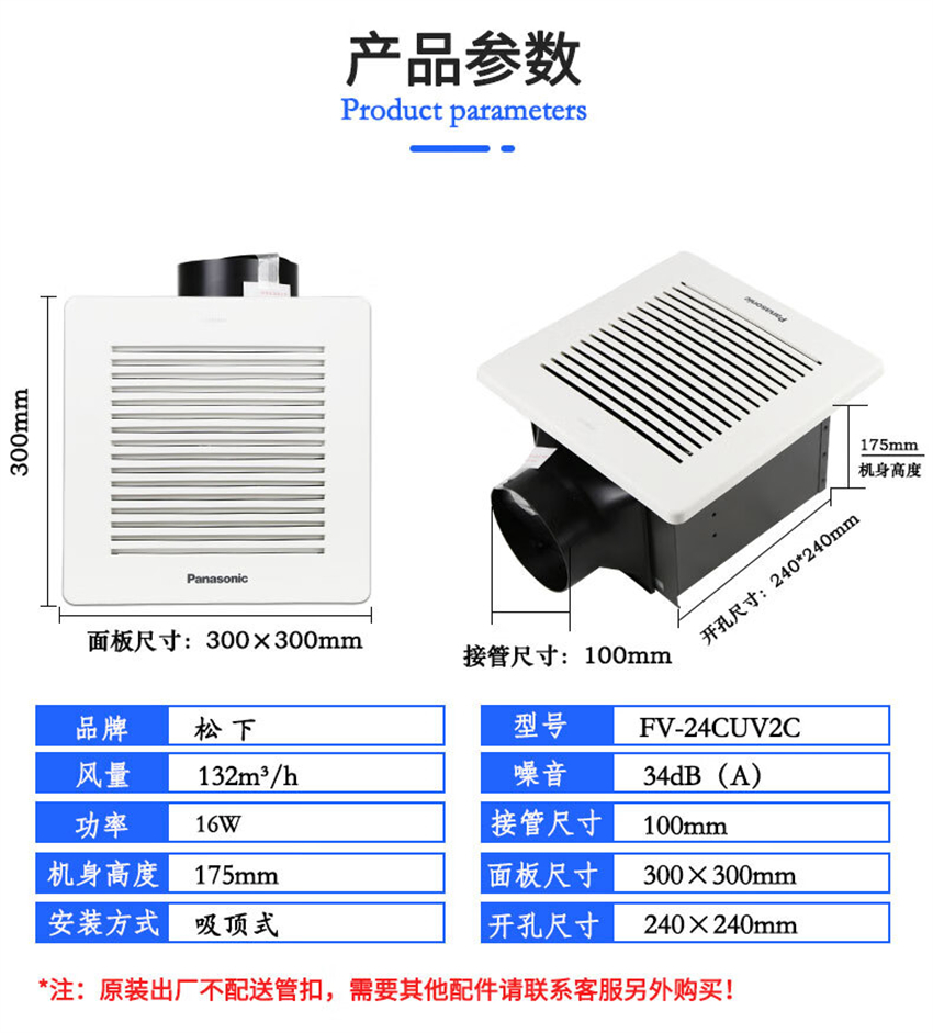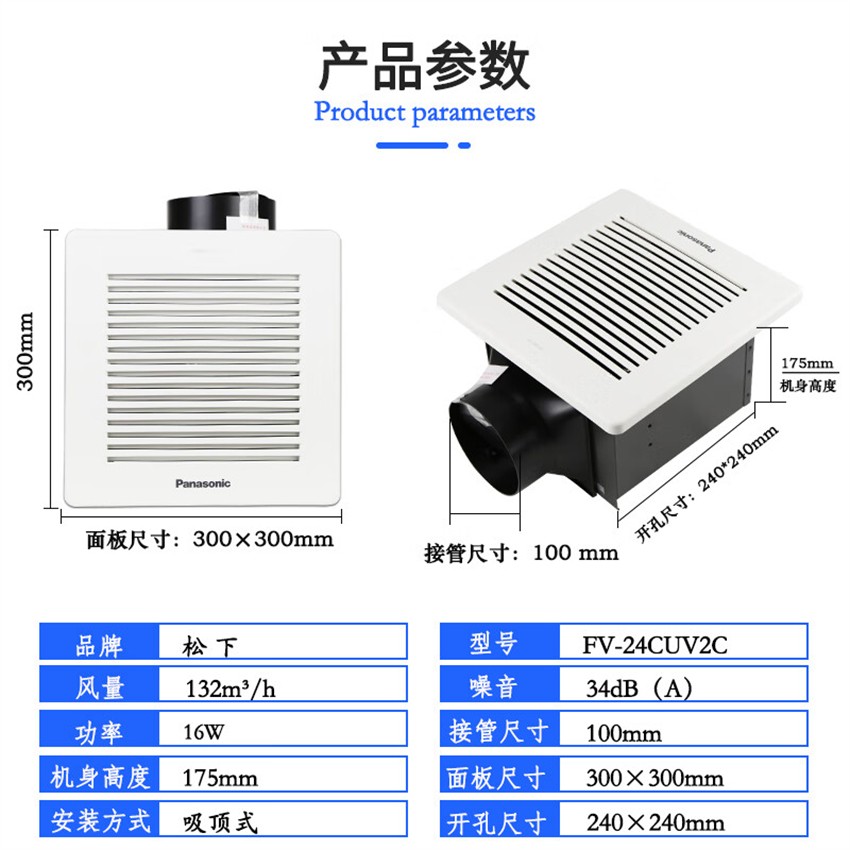 FV24CUV2C 厨房卫生间吸顶嵌入式抽风机 排气扇静音换气扇 松下Panasonic