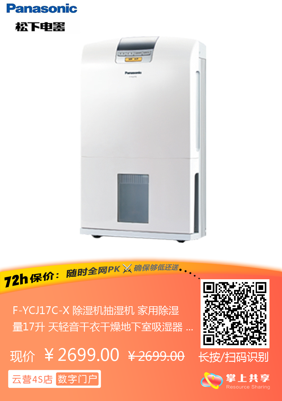 F-YCJ17C-X 除湿机抽湿机 家用除湿量17升 天轻音干衣干燥地下室吸湿器 松下PanasonicF