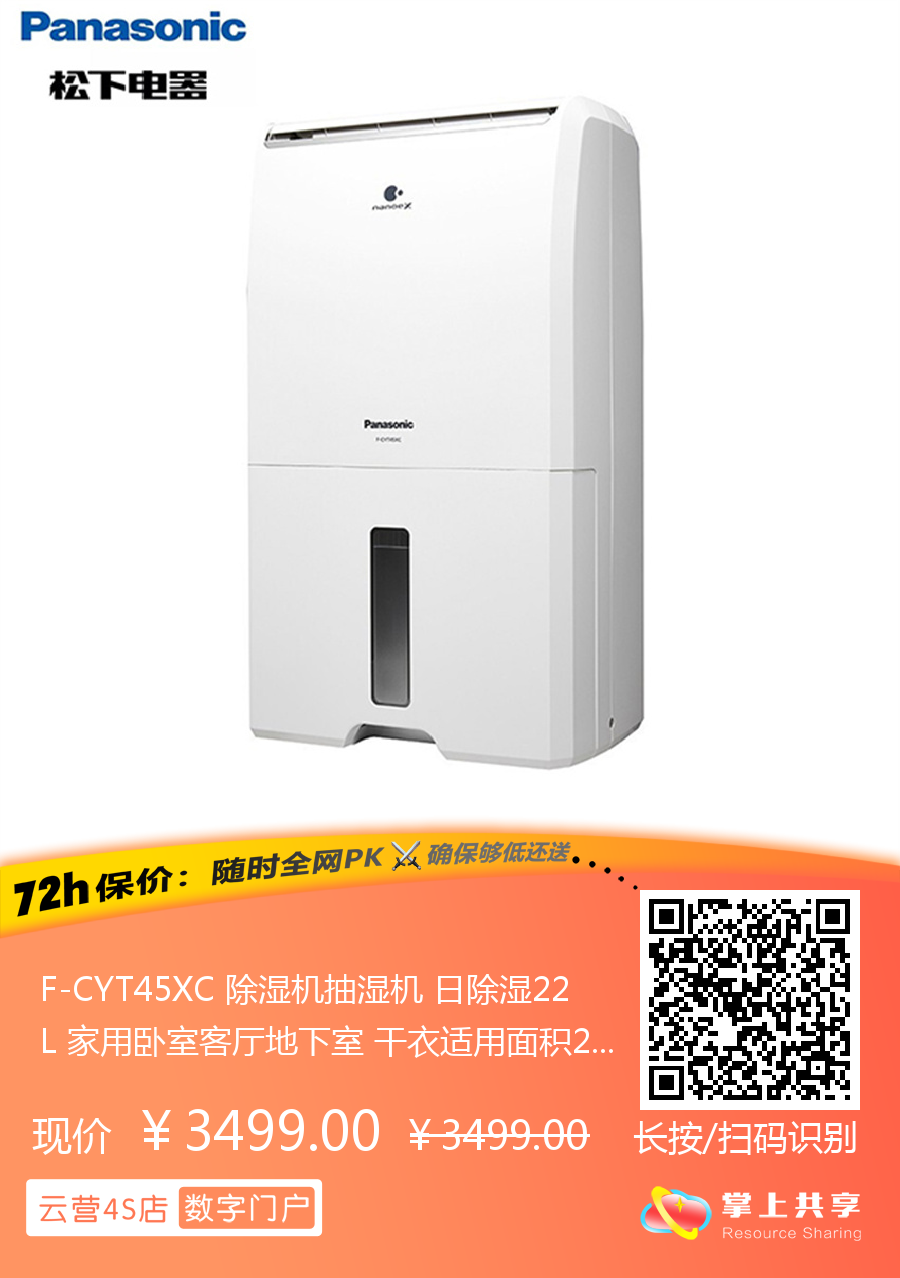 F-CYT45XC 除湿机抽湿机 日除湿22L 家用卧室客厅地下室 干衣适用面积2055 松下Panasonic