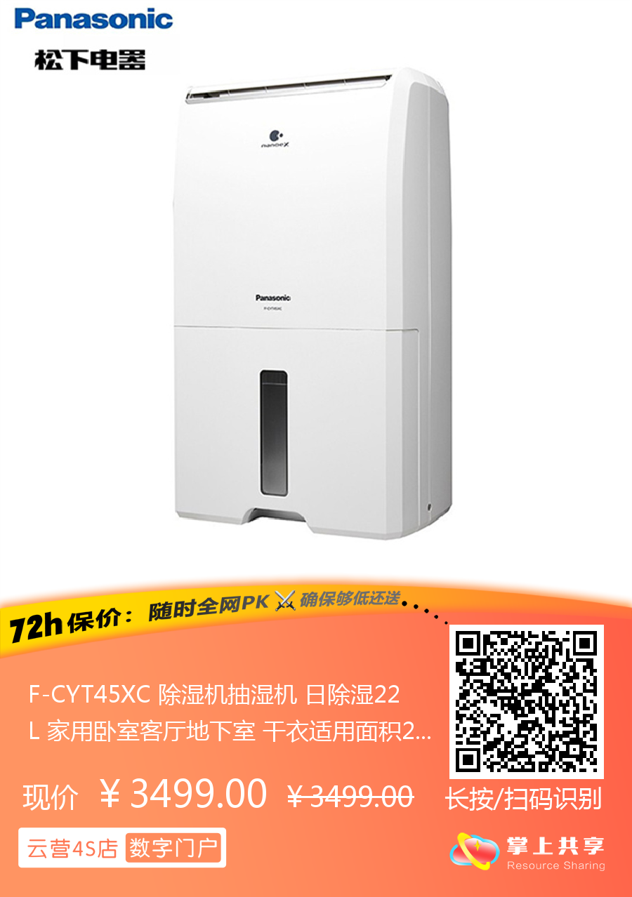 F-CYT45XC 除湿机抽湿机 日除湿22L 家用卧室客厅地下室 干衣适用面积2055 松下Panasonic