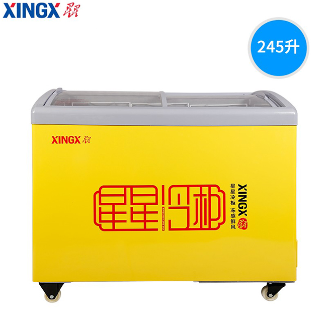 SD/SC-245YE 245升 单温 商用卧式玻璃门圆弧冷柜 雪糕饮料柜 黄色 星星(XINGX)