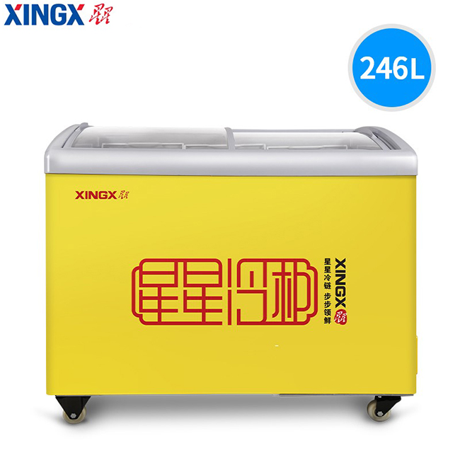 SD/SC-246YE 246升 单温 商用卧式玻璃门圆弧冷柜 雪糕饮料柜 黄色 星星(XINGX)