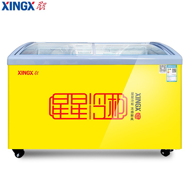 SD/SC-325YE 325升 单温 商用卧式玻璃门圆弧冷柜 雪糕饮料柜 黄色 星星(XINGX)