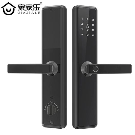 806 五合一功能 玻璃屏 西尚方案 明光指纹头 铝面板 精雕把手 家家乐智能锁