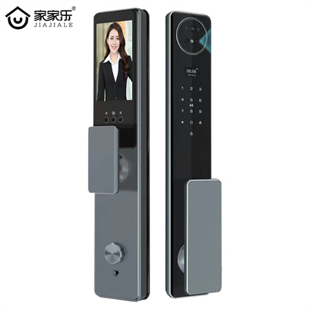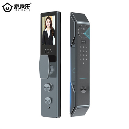 F006 航空铝一体成形 CNC精雕 5寸高清大屏 人脸对讲指纹款 家家乐智能锁
